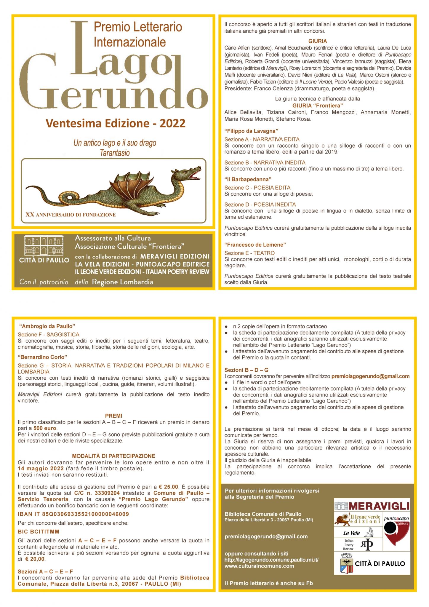 XX edizione del Premio Letterario Internazionale Lago Gerundo