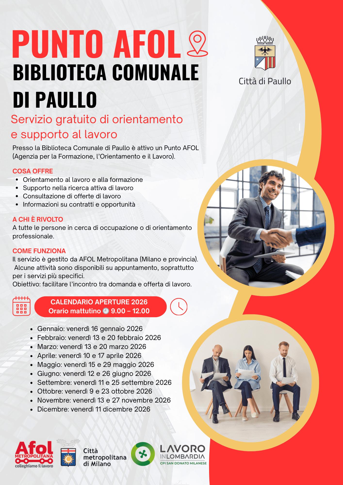 PUNTO AFOL PRESSO LA BIBLIOTECA COMUNALE DI PAULLO