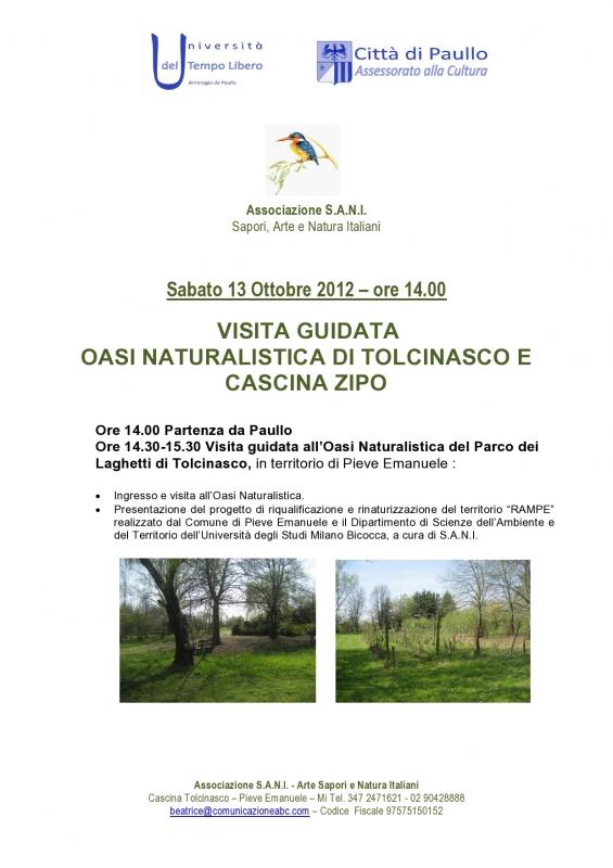 VISITA GUIDATA ALL'OASI NATURALISTICA DI TOLCINASCO E CASCINA ZIPO