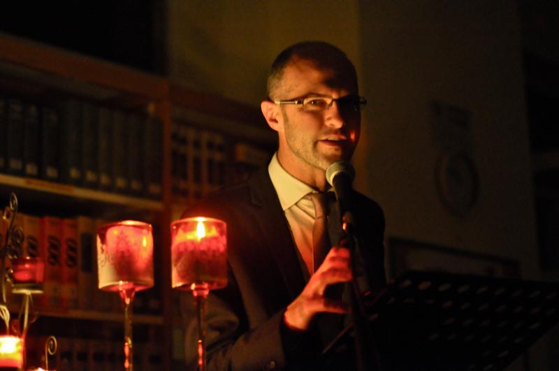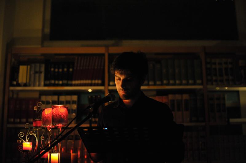 a lume di candela nella sala di lettura della