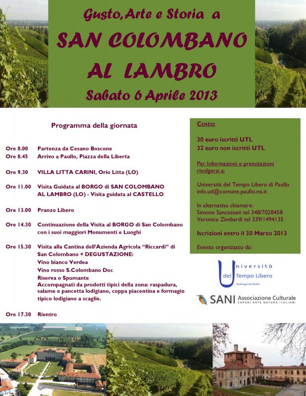 L'Università del Tempo Libero di Paullo vi invita alla prossima gita a SAN COLOMBANO AL LAMBRO