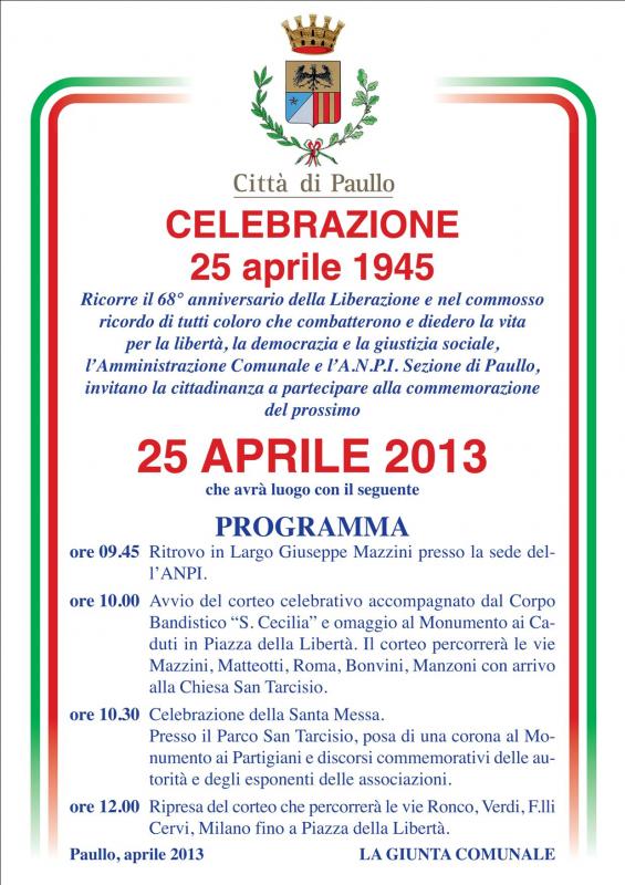 l’Amministrazione Comunale e l’A.N.P.I. Sezione di Paullo,
