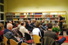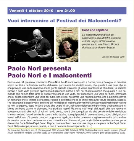 Buona sera. Mi presento, mi chiamo Paolo Nori, ho 46 anni, sono nato a Parma, vivo a Bologna, di mestiere scrivo dei libri e ne traduco, anche, dal russo, per via che ho studiato russo, che questa è una cosa che so che provoca una certa reazione che la gente quando dico così gli viene spontaneo di chiedersi Ha studiato russo? e delle volte gli viene spontaneo di chiederlo anche a me: hai studiato russo? che questa è una domanda che mi han fatto tante di quelle volte che io una volta, per rispondere una volta per tutte, ammesso che si possa rispondere una volta per tutte, non credo, ho scritto una risposta scritta, che è poi finita dentro un romanzo che si intitola Storia della Russia e dellʼItalia che io allʼinizio non avrei voluto leggerla, stasera, lʼho letta tante di quelle volte, solo che poi ho deciso di leggerla per vari motivi ma principalmente per via che se non la leggevo, dopo io sono sicuro che un poʼ di voi, nel corso dei prossimi giorni che dobbiam stare insieme venivano da me mi dicevano. Hai studiato russo? Ma come mai? e gli altri, quelli che non venivano, adesso non tutti, che molti di voi, mi rendo conto, non è che son qui per via che pendono dalle mie labbra che non vedono lʼora di sentire le cose che ho da dire, son qui perché, in un certo senso, sono obbligati, son venuti in Polonia, cʼè questa cosa, un programma rigido, non è che potevano scegliere se venire qui o andare da unʼaltra parte, in un certo senso sono costretti e ascoltano così, per modo di dire e quello che dico, potrei dire anche Papè Satan Papé Satan Aleppe, non farebbero neanche una piega, a me piace molto Papé Satan