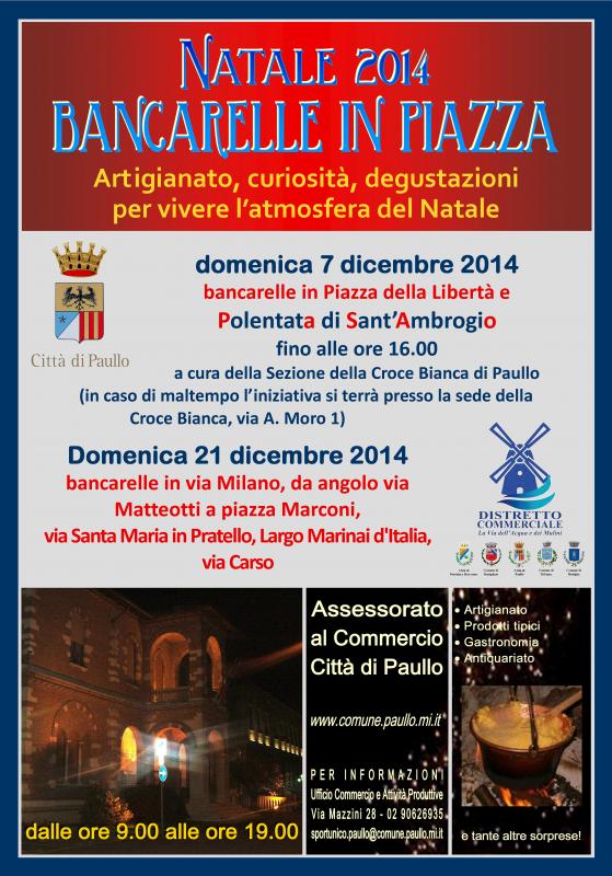 Bancarelle in Piazza - In Piazza della Libertà artigianato, curiosità, degustazioni e Polentata di Sant’Ambrogio fino alle ore 16.00, a cura della Sezione della Croce Bianca di Paullo (in caso di maltempo l’iniziativa si terrà presso la sede della Croce Bianca, via A. Moro 1)