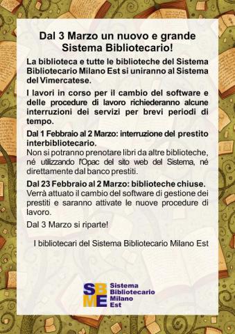 La biblioteca e tutte le biblioteche del Sistema Bibliotecario Milano Est si uniranno al Sistema