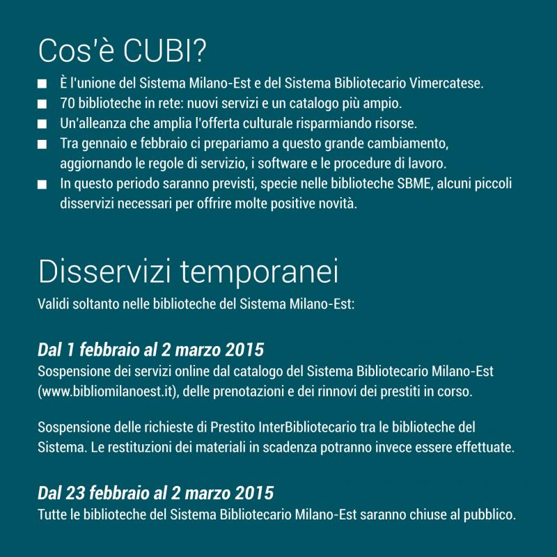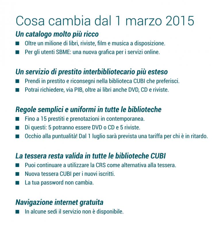 La tessera resta valida in tutte le biblioteche CUBI