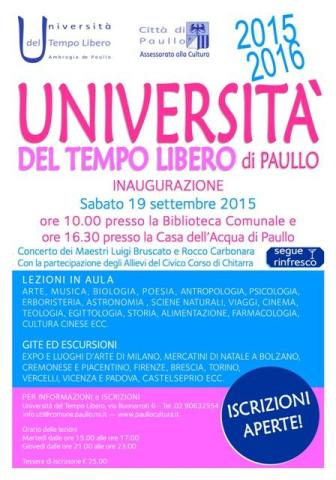 Vi invitiamo a partecipare all'Inaugurazione del nuovo Anno Accademico 2015/2016 dell'Università del Tempo Libero di Paullo
