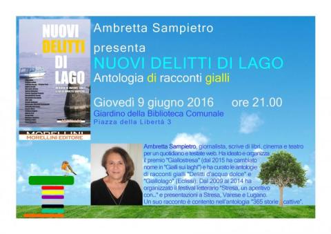 Ambretta Sampietro presenta NUOVI DELITTI DI LAGO Antologia di racconti gialli Morellini editore Giovedì 9 giugno 2016 ore 21.00 Giardino della Biblioteca