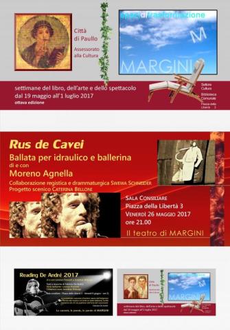 Rus de Cavei Ballata per idraulico e ballerina di e con Moreno Agnella Collaborazione registica e drammaturgica SWEWA SCHNEIDER Progetto scenico CATERINA BELLONI SALA CONSILIARE Piazza della Liberta' 3 VENERDI' 26 MAGGIO 2017 - ore 21.00 Il teatro di MARGINI