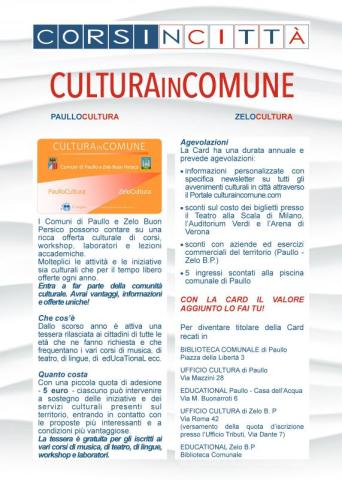 Dallo scorso anno è attiva una tessera rilasciata ai cittadini di tutte le età che ne fanno richiesta e che frequentano i vari corsi di musica, di teatro, di lingue, di edUcaTionaL ecc.