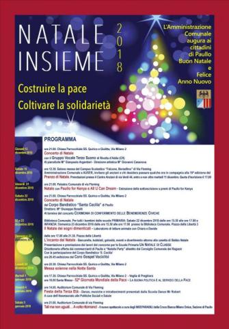 L’incanto del Natale - Bancarelle, hobbisti, golosità, eventi e divertimento attorno alla casetta di Babbo Natale Presentazione e premiazione dei lavori del concorso per le Scuole Primarie UN NATALE DI CLASSE Ghiottonerie offerte dai commercianti di Paullo e “Nutella Party” allestito dal Consiglio Comunale dei Ragazzi Con la partecipazione del Corpo Bandistico ‘S. Cecilia’ ore 20.45 esibizione del Coro Gospel VocixVoi
