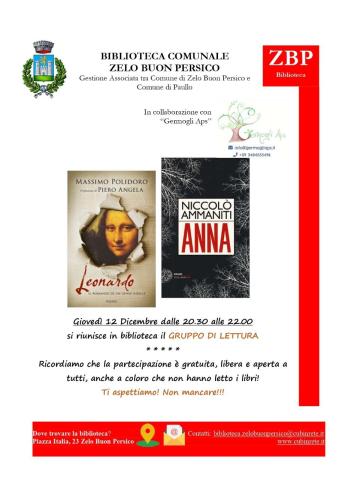 si riunisce in biblioteca il GRUPPO DI LETTURA