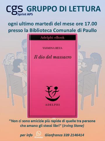 Il prossimo incontro del Gruppo si terrà martedì 24 febbraio 2026. Si parlerà dei libro "Il dio del massacro" di Yasmina Reza